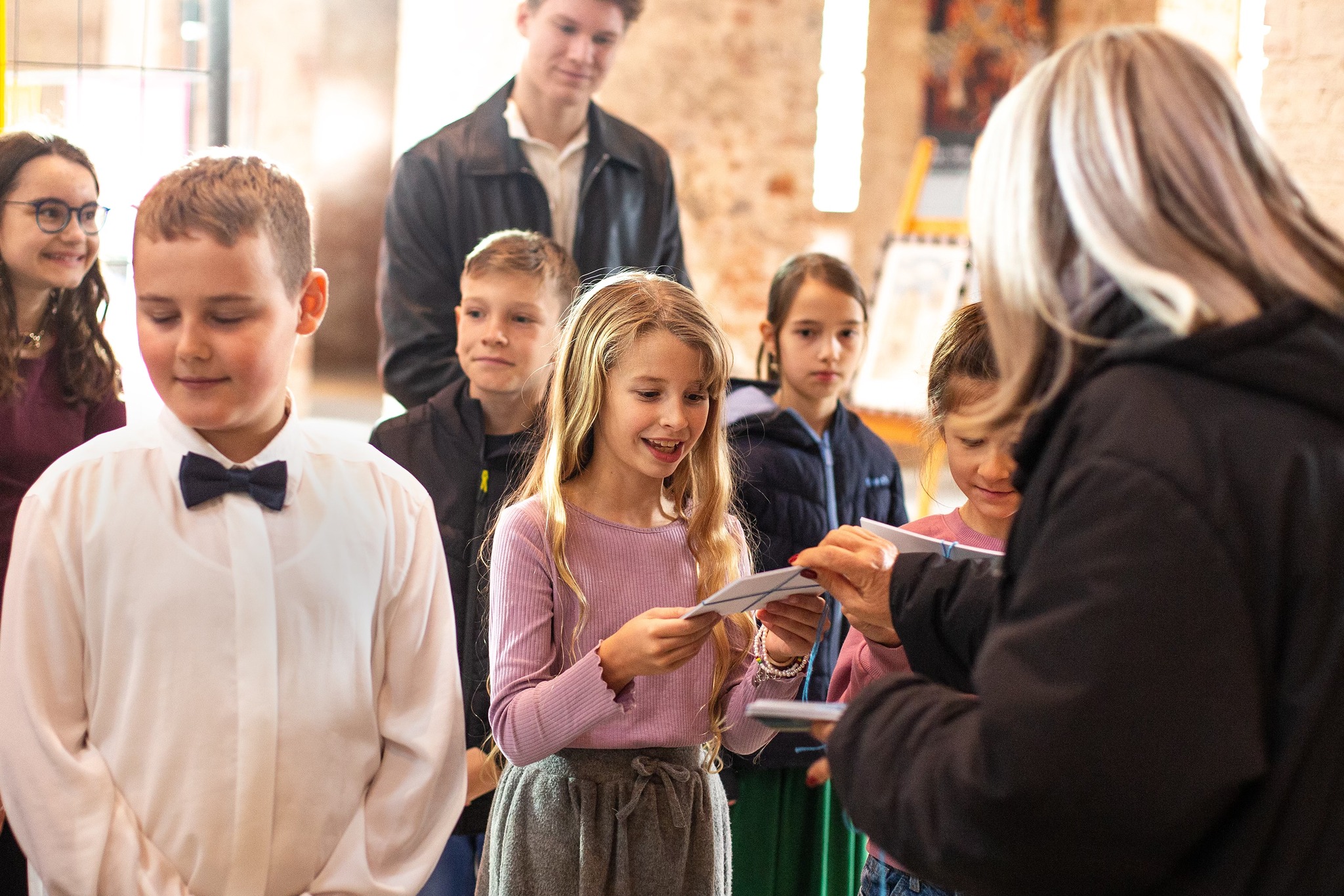 Festlicher Abschluss war die Ausstellungseröffnung der Fotos und Collagen in der Marienkirche, mit dabei viele Eltern, Stadträte, der Bürgermeister Jan-Hendrik Bahn; und natürlich noch mehr Kids der Grundschule und Kita. Geführt von jungen Museums-Guides und einem „Verkaufsstand“ für Snacks und Postkarten-Drucke. Die Ausstellung geht 2026 womöglich in der Region auf Tour, Anfragen gibt es schon!